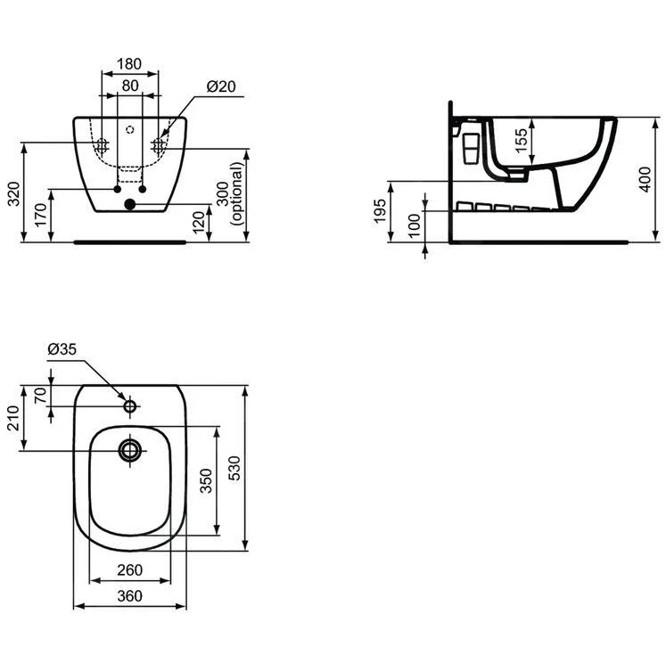 - 1 gat voor bidetkraan