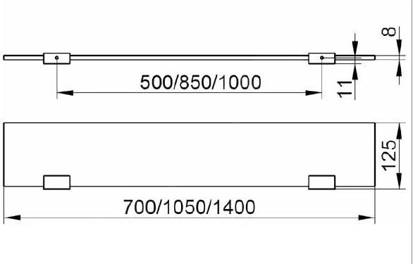 - totale afmetingen: 1050 x 125 x 8 mm