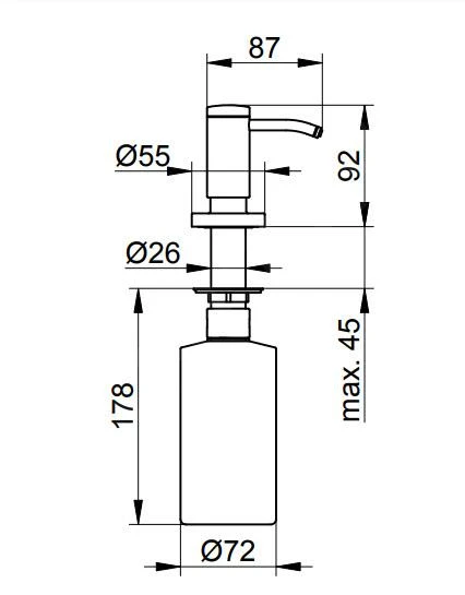 Inbouw zeep-, vloeibare zeep-, desinfectiegel- of afwasmiddeldispenser