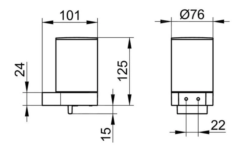 - totale afmetingen: 125 x 101 x 76 mm