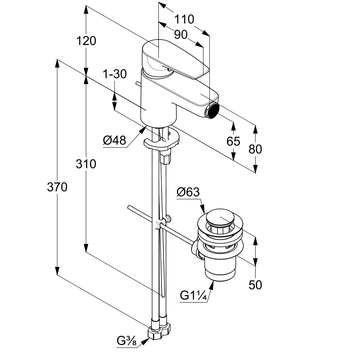 - keramische cartouche met begrenzing van de maximale watertemperatuur