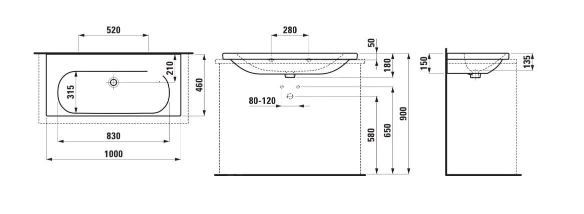 Wastafel voor opbouw op plaat / kast