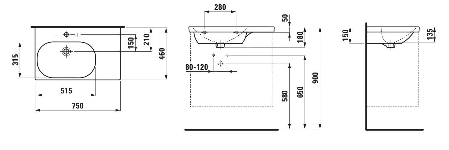 Meubelwastafel met afleg rechts