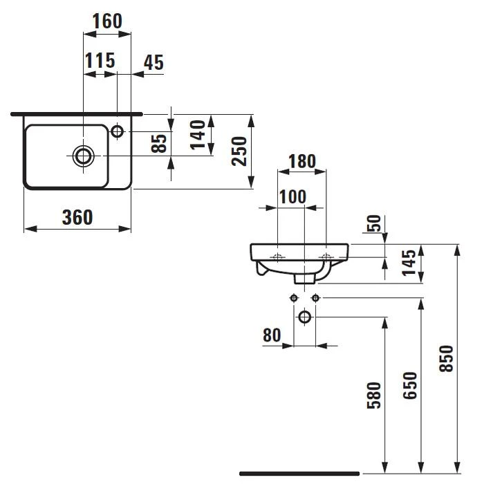 Fontein asymmetrisch met 1 kraangat, met overloop