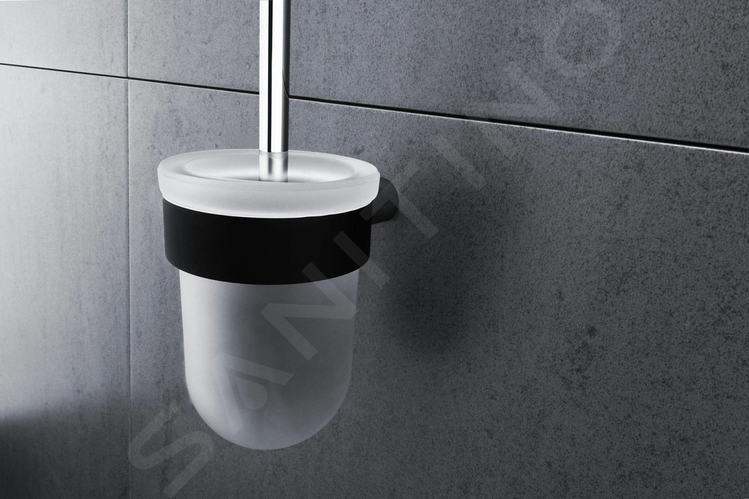Toiletborstel voor wandmontage met lage borstelhouder van glas