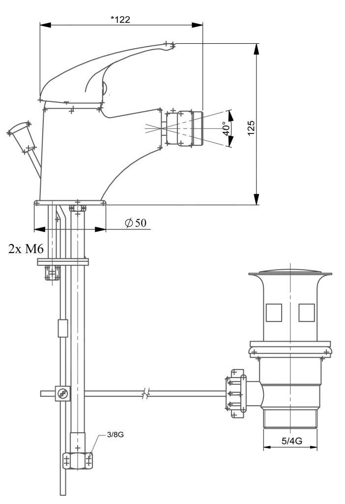 Metalia 55 eengreeps bidetkraan incl. waste