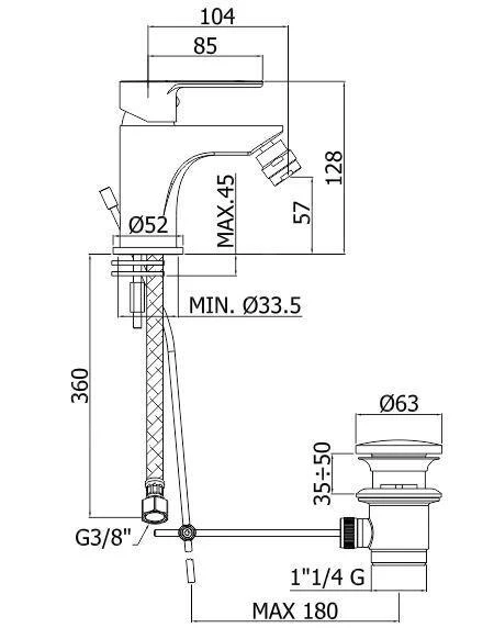 - set van 2 roestvrijstalen slangen G 3/8″ voor aansluiting op hoekstopkranen met een lengte van 40 cm
