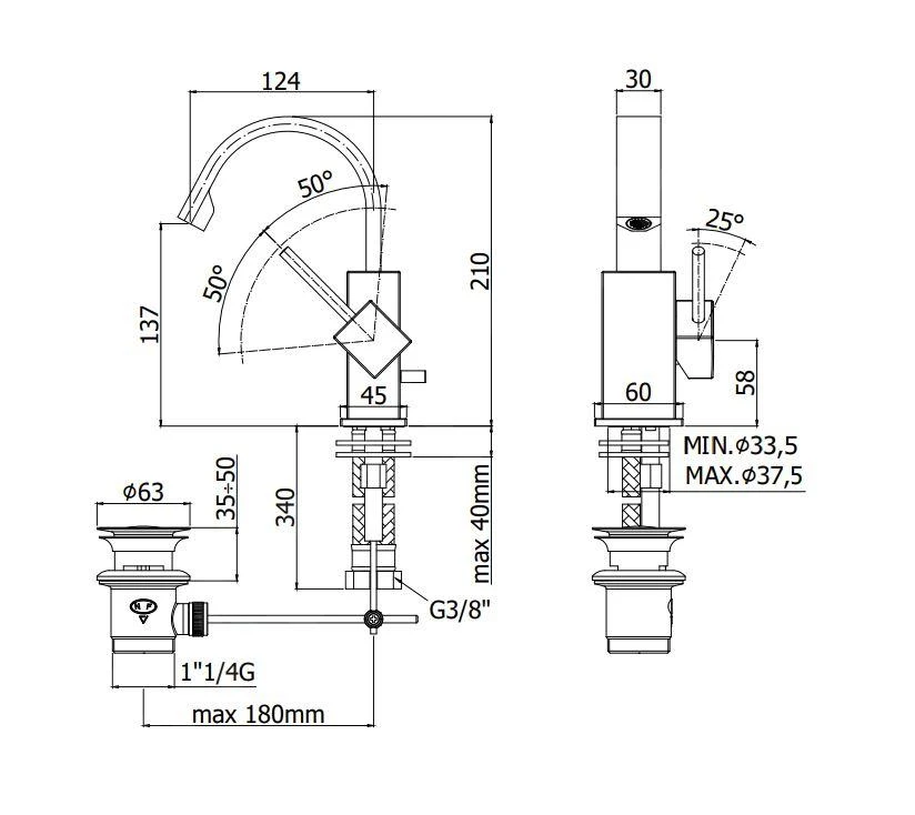 - kraanhoogte 210 mm