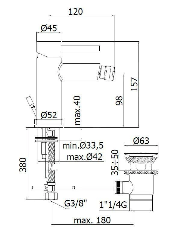 Staande eengreeps bidetkraan met waste