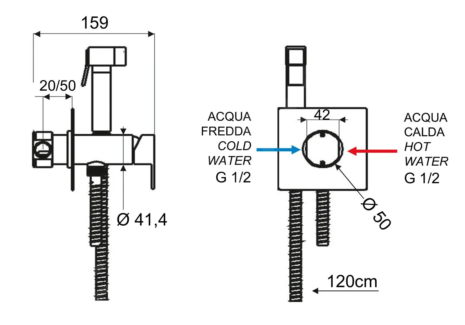 - inclusief bidetdouche en slang van 1200 mm