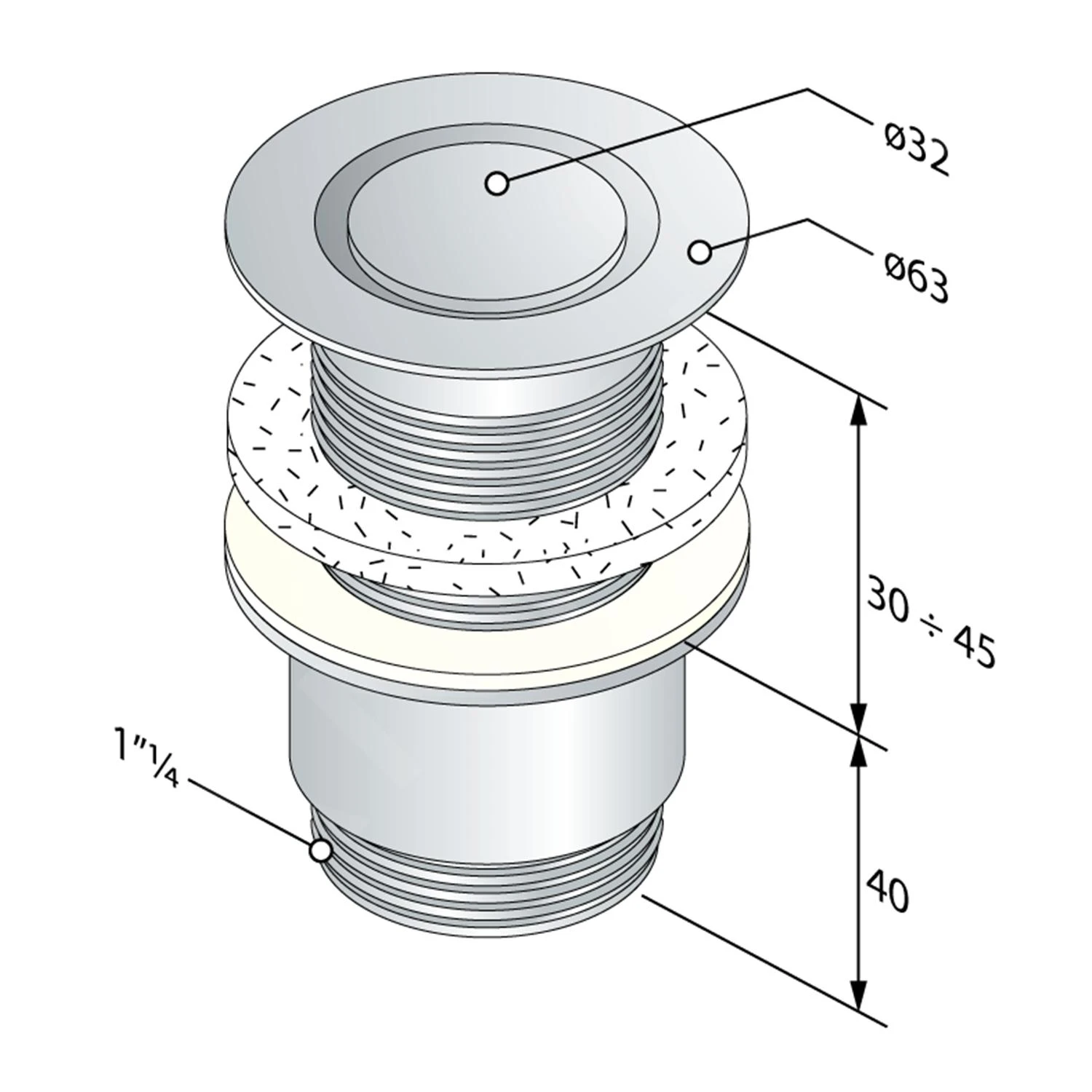 Niet-afsluitbare ronde waste voor wastafels zonder overloop