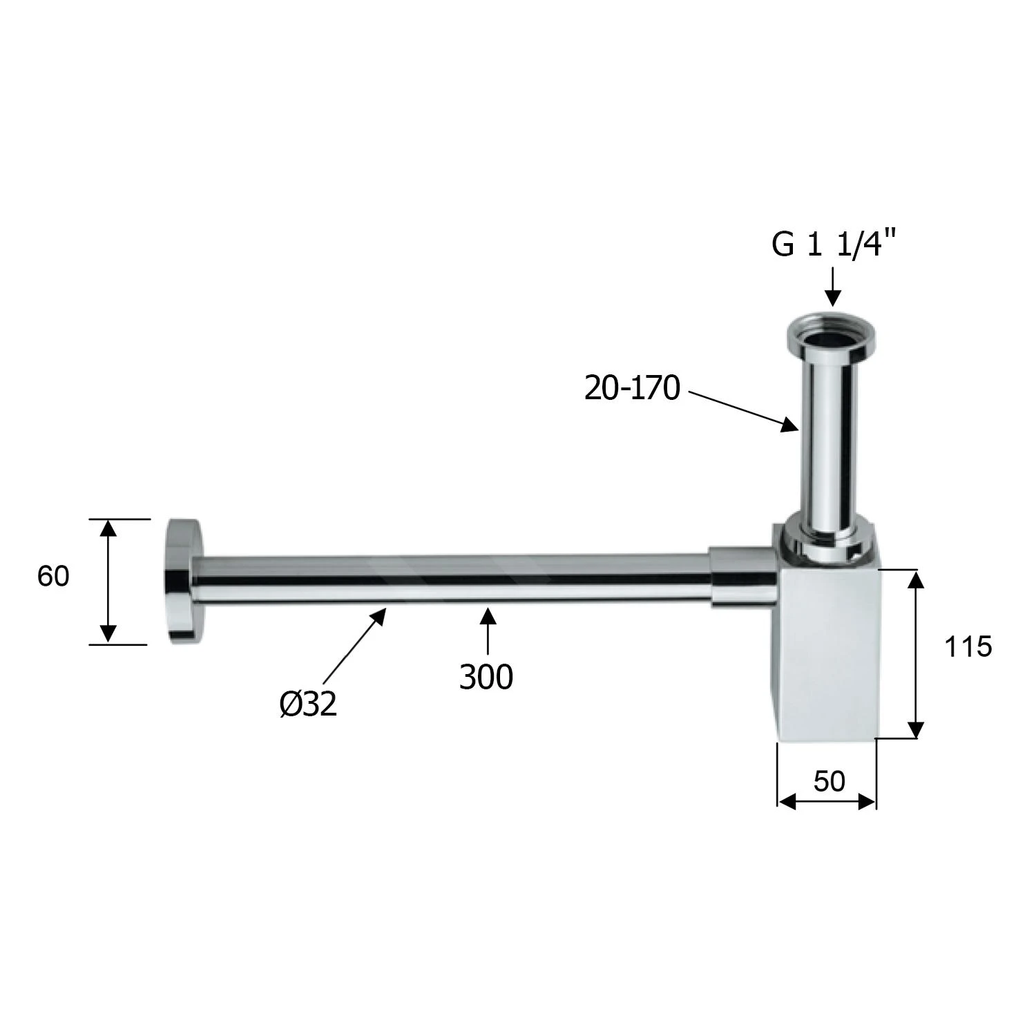 - diameter afvoer: 32 mm