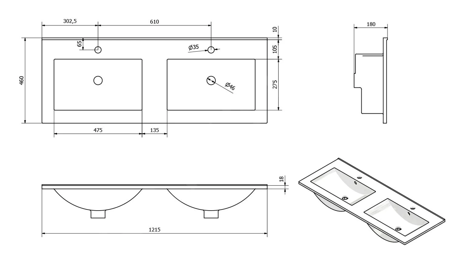 Slim dubbele meubelwastafel, met overloop