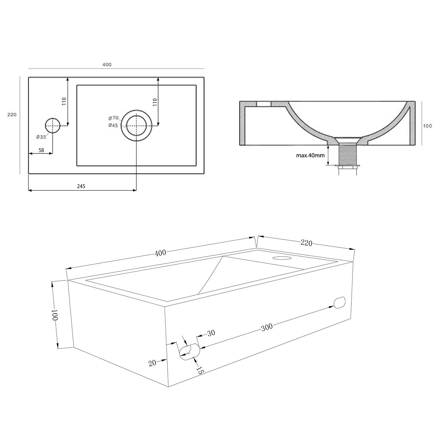 - afmetingen: 400 x 220 x 100 mm