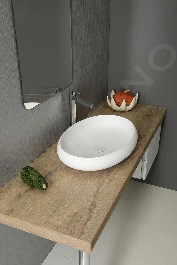 - installatie met waste met mat witte afdekking is aanbevolen om de unieke vorm van deze waskom te onderstrepen