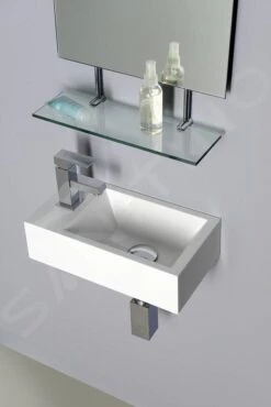Gegoten marmer is een homogeen materiaal dat zich kenmerkt door een grote stijfheid en stabiliteit. Het  GELCOAT oppervlak van de producten is hard en zeer goed bestand tegen gebruik in badkamers.