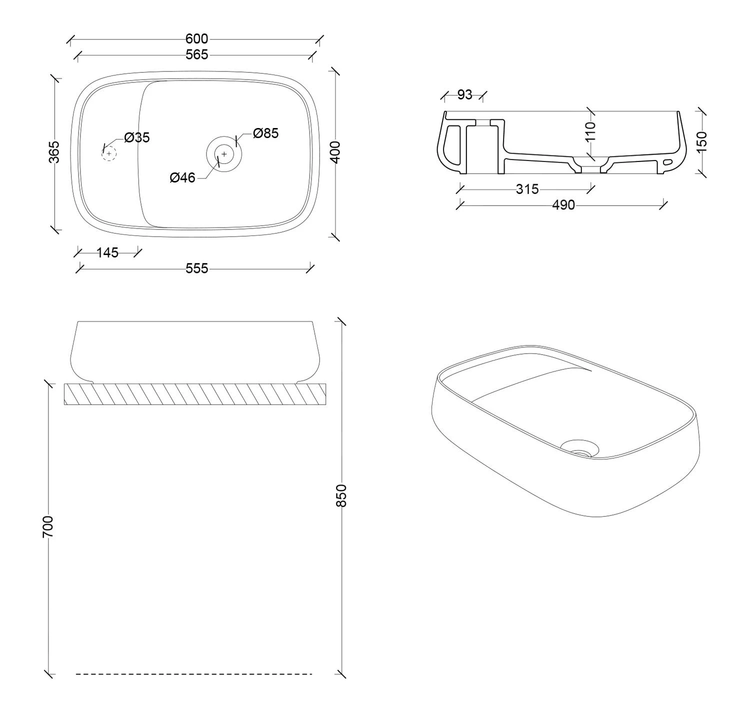 - de dunwandige keramiek geeft de wastafel een lichte, elegante uitstraling