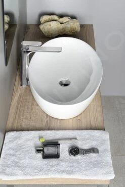- de dunwandige keramiek geeft de wastafel een lichte, elegante uitstraling