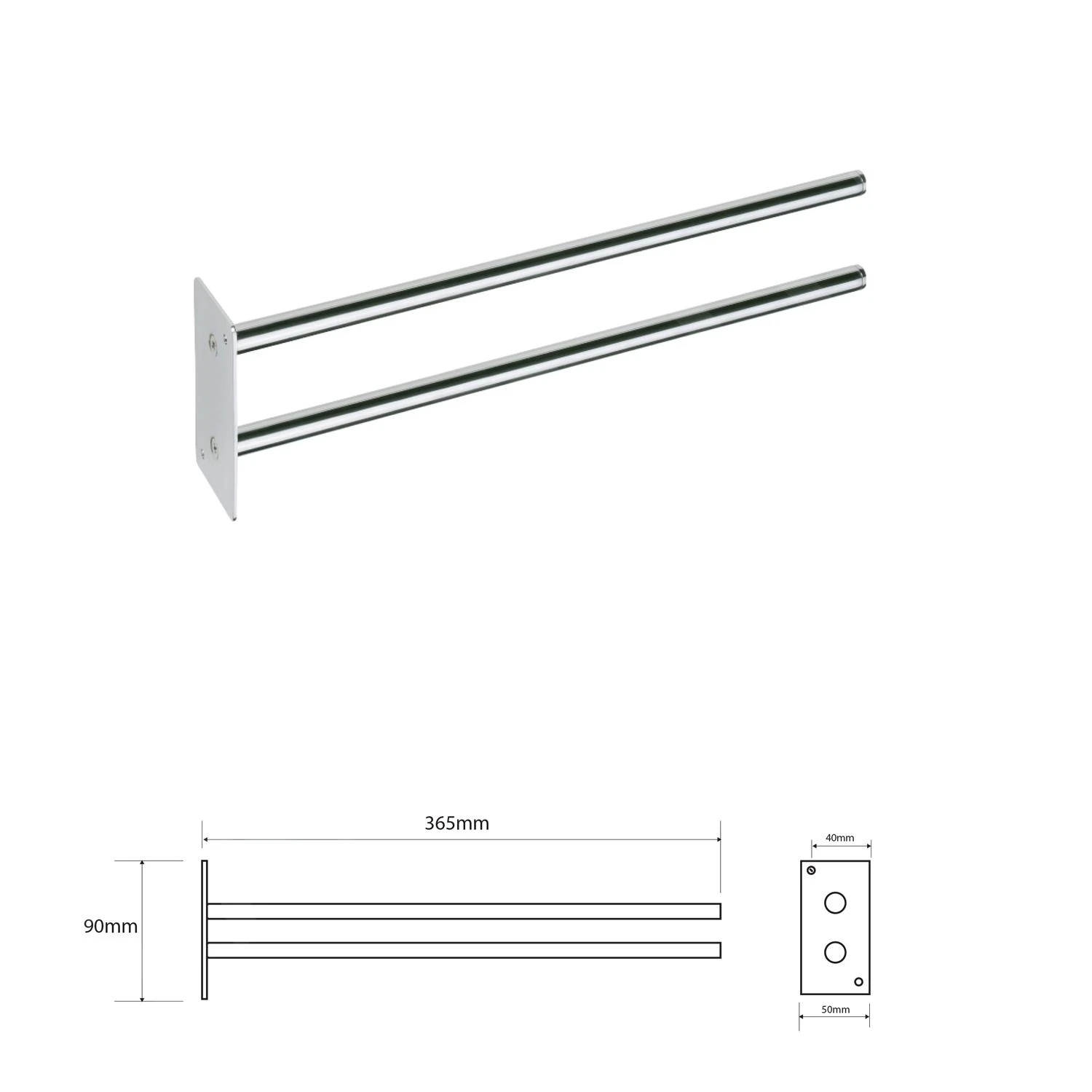 SMART dubbele handdoekhouder 365 mm, dubbel, chroom