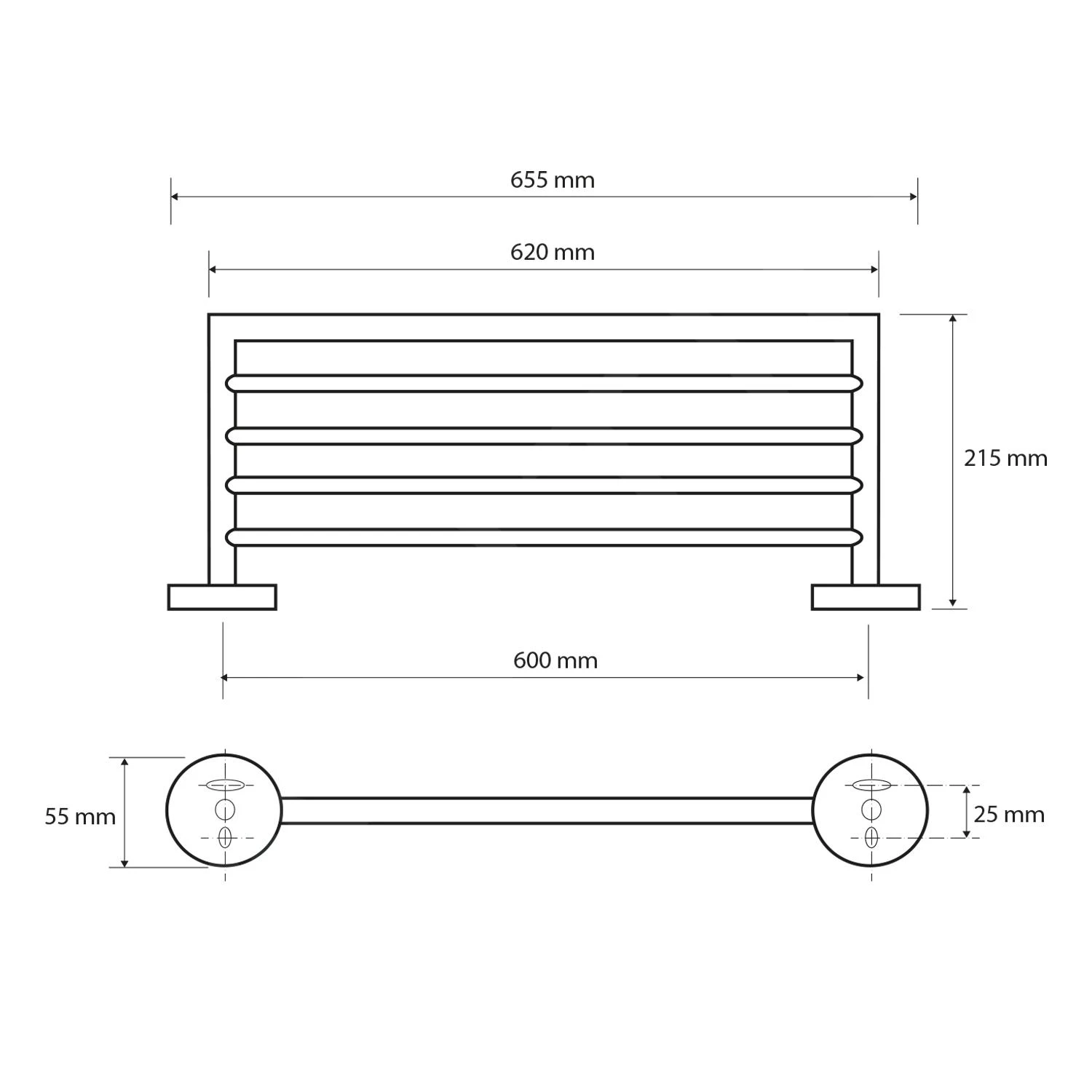 X-ROUND handdoekrek 650 mm, chroom