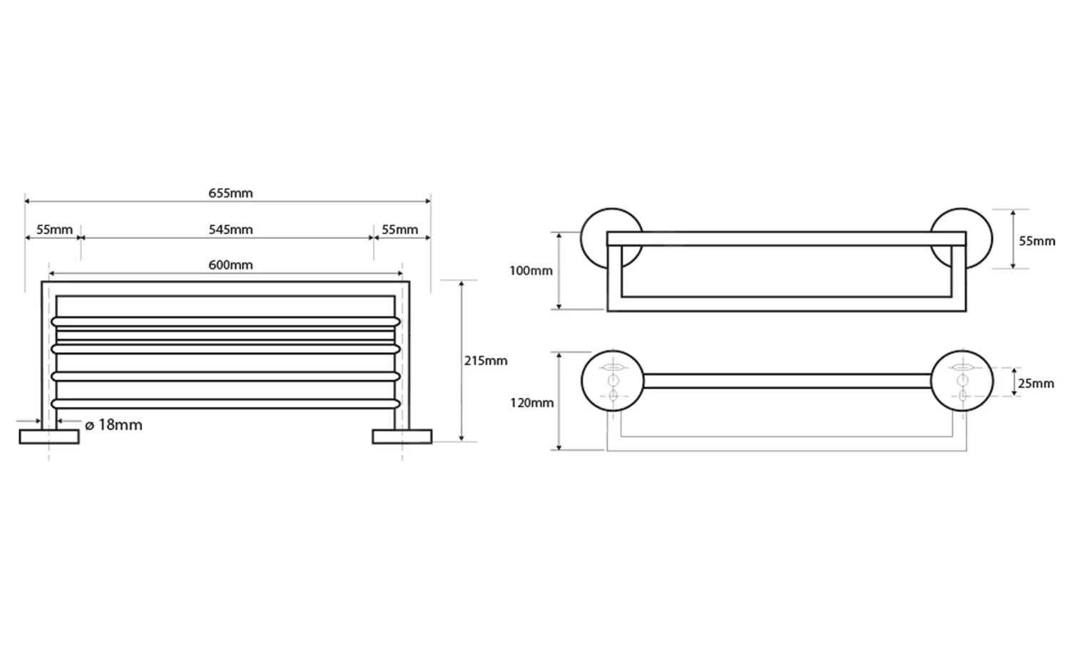 Handdoekrek met stang 655 x 215 x 110 mm