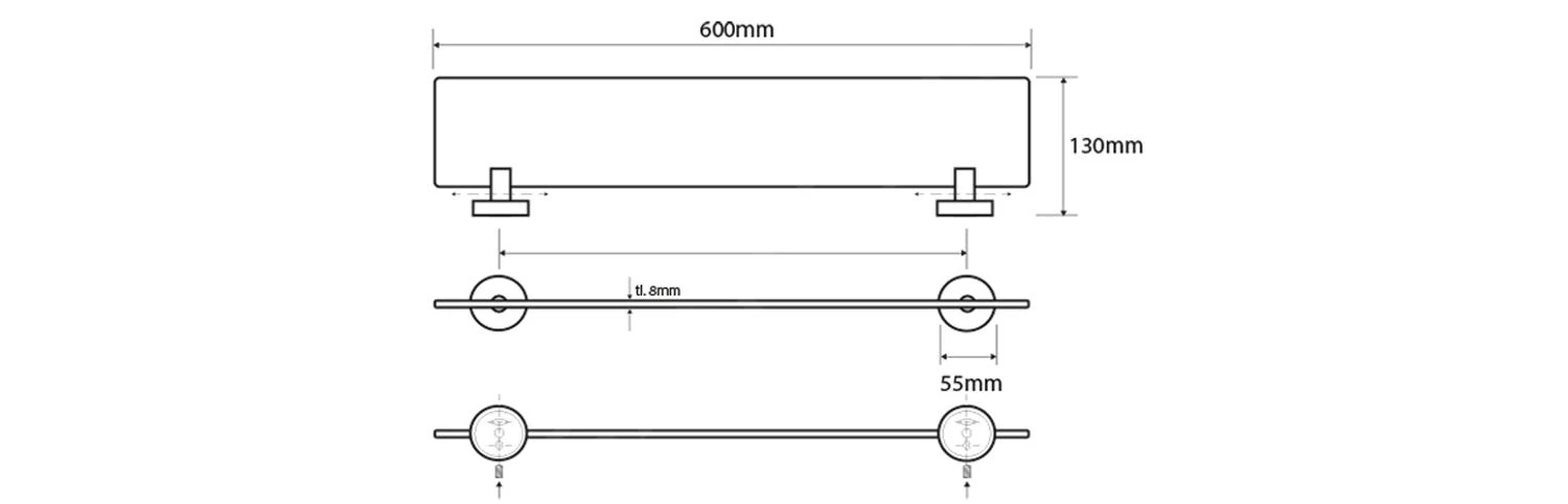 X-STEEL glazen planchet 600 mm, geslepen roestvrij staal