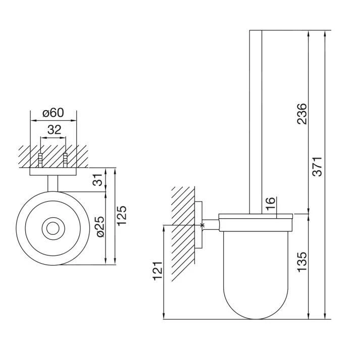 Toiletborstel, chroom, wit glas