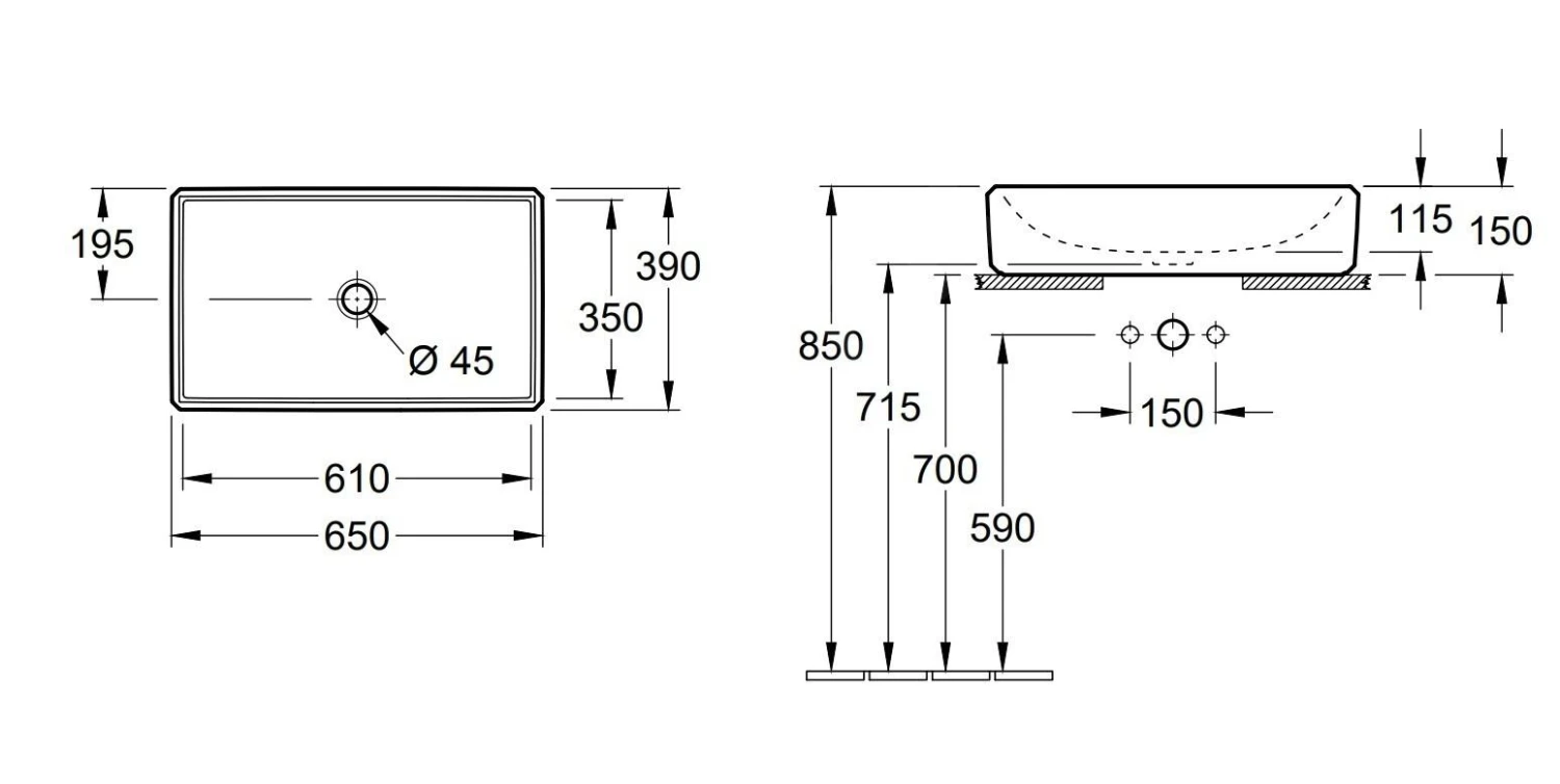 Wastafel voor opbouw op plaat of wastafelkast