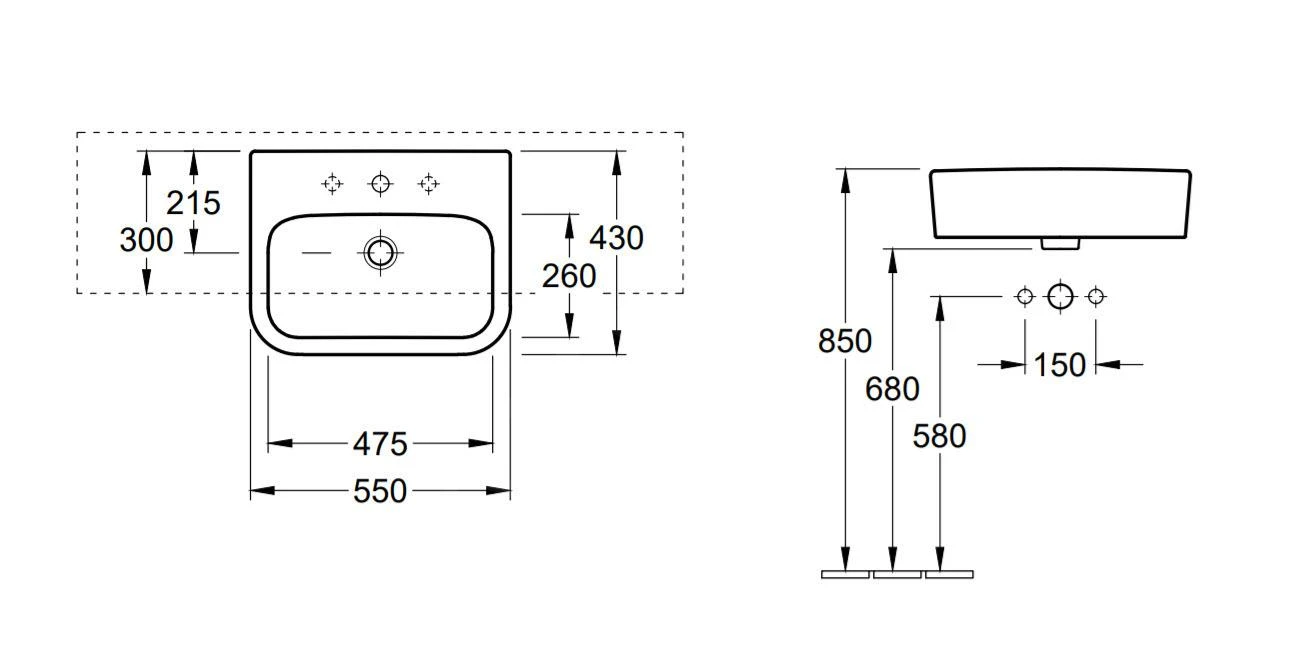 Semi-inbouw wastafel voor op plaat of wastafelkast