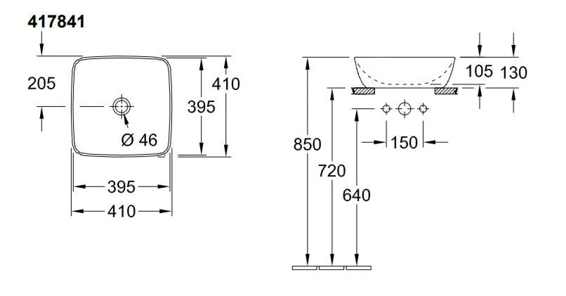 - geschikt voor wandgemonteerde kranen of kranen voor opzetwastafel