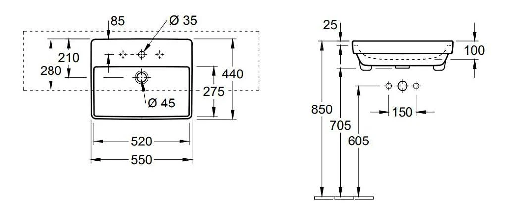 Illustratieve foto, kraan en afvoerkap niet meegeleverd.