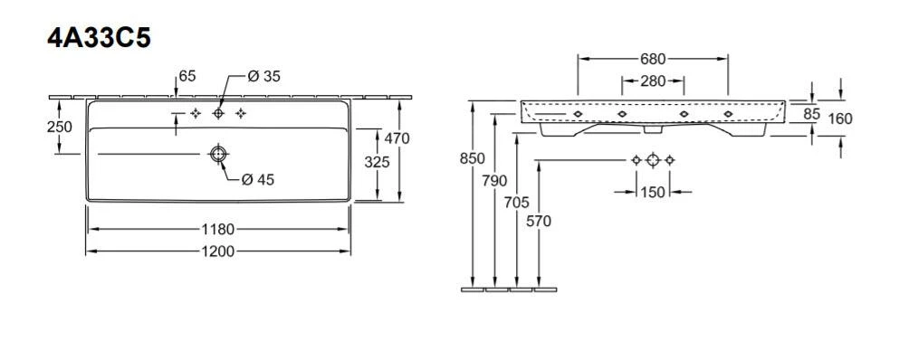 Illustratieve foto, kraan en afvoerafdekking niet meegeleverd.