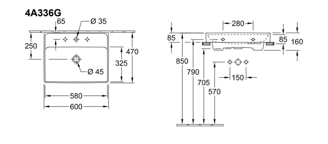 Illustratieve foto, kraan en afvoerafdekking niet meegeleverd.