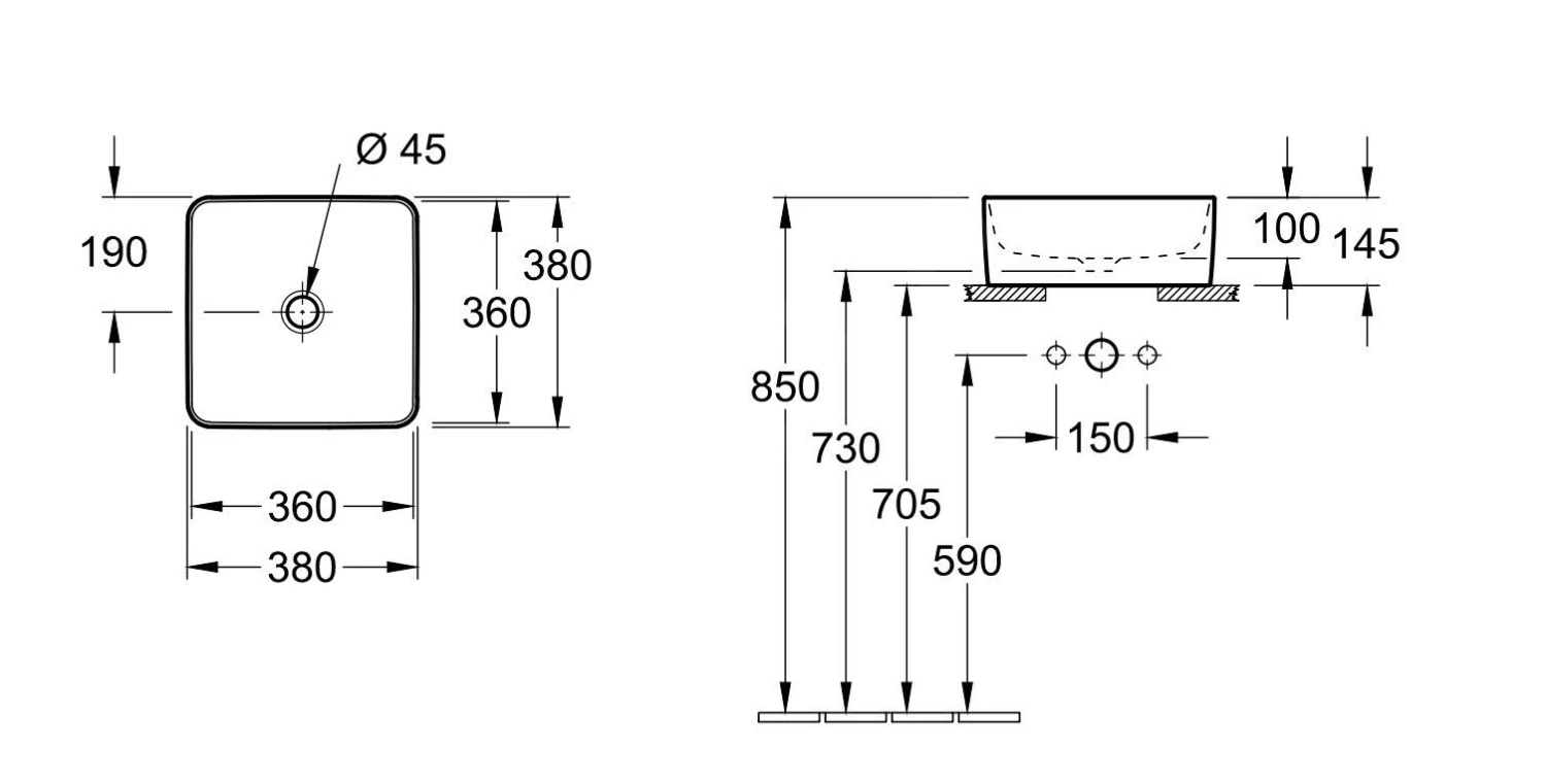 Wastafel voor opbouw op plaat of badkamerkast
