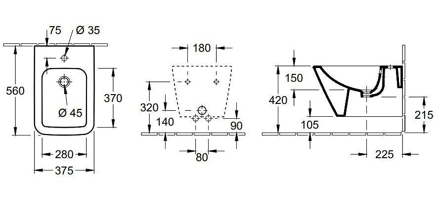 Eéngats wandbidet met overloop