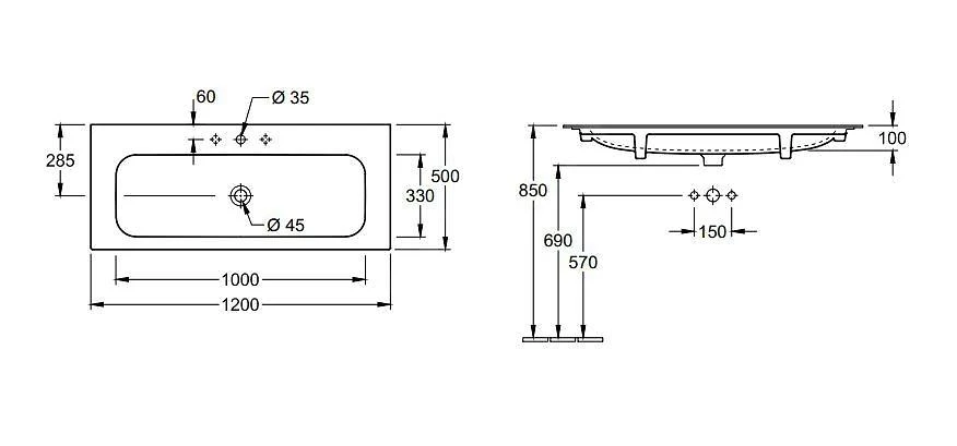 - geschikt voor plaatsing op een wastafelblad en op een wastafelkast