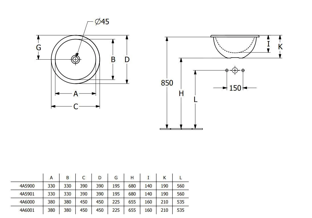 Ronde inbouwwastafel