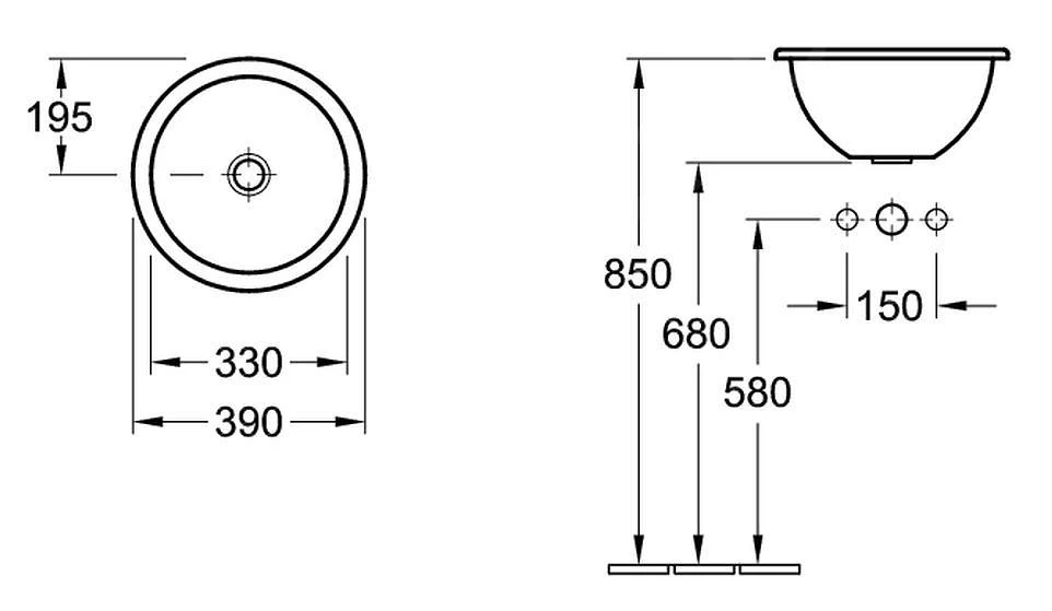 Inbouwwastafel voor op plaat of op wastafelkast