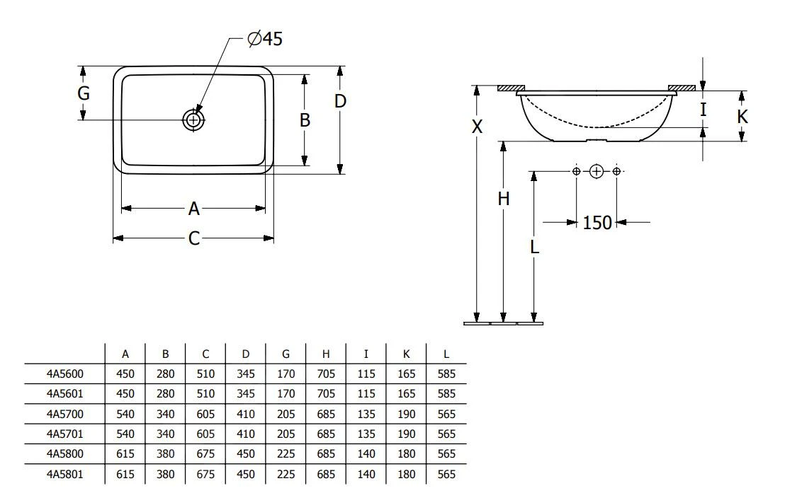 Rechthoekige onderbouwwastafel