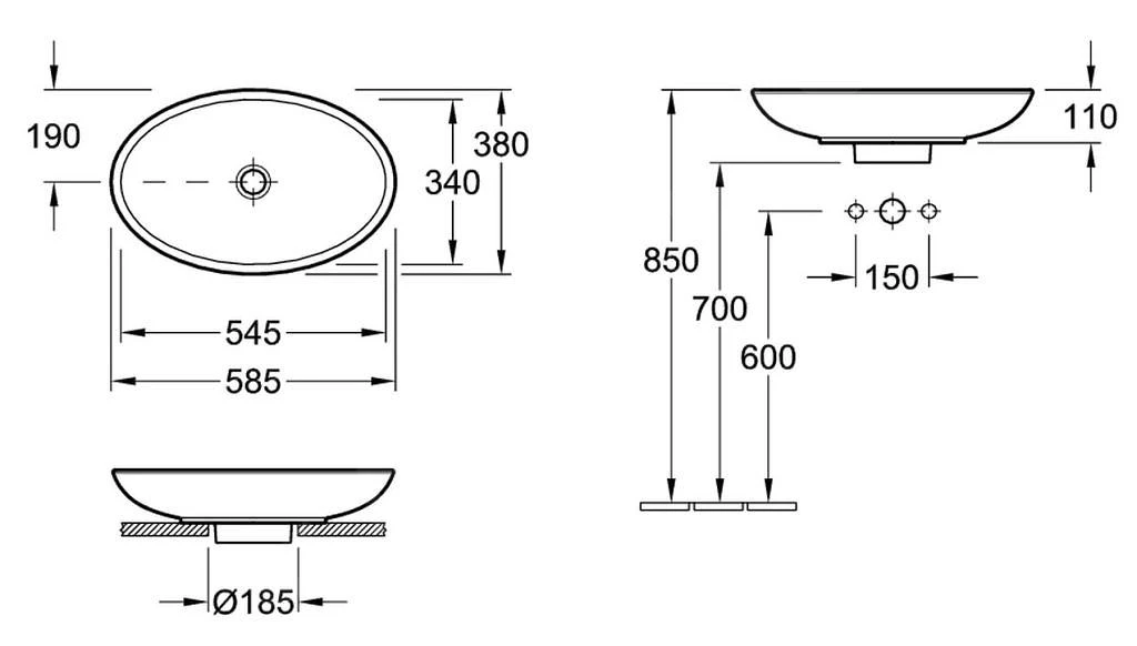 Wastafel voor opbouw op plaat of op wastafelkast