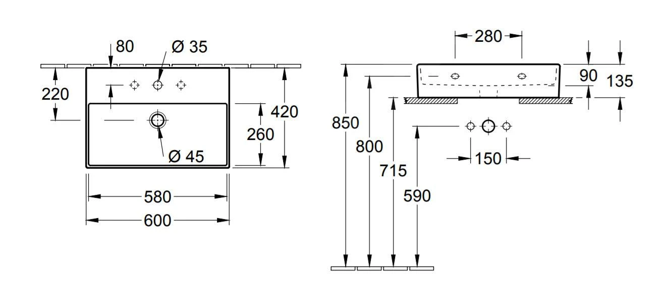 Illustratieve foto, kraan en afvoerafdekking niet meegeleverd.
