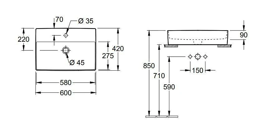 - aanbevolen voor montage met minimale afstand tussen achterwand van wastafel en wand