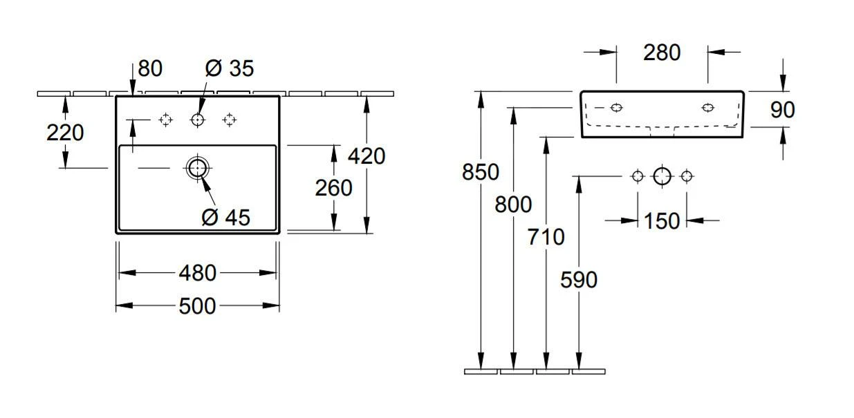 Illustratieve foto, kraan en afvoerafdekking niet meegeleverd.