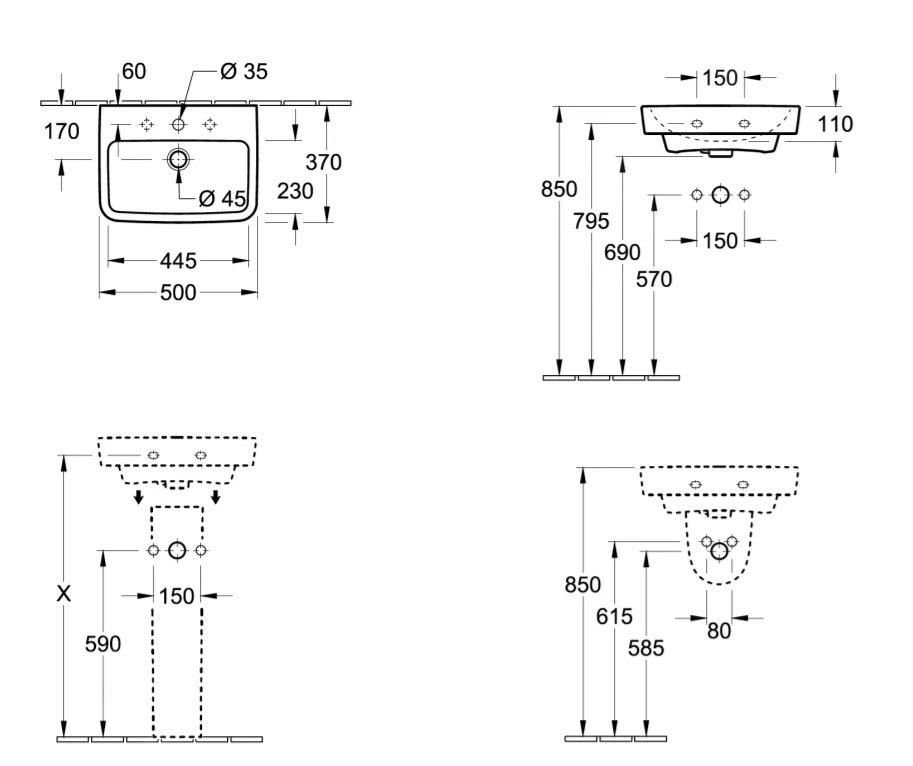 Villeroy & Boch Subway 2.0 – Fontein 500×400 Mm, Met Overloop En Kraangat, Ceramicplus, Wit 73155GR1