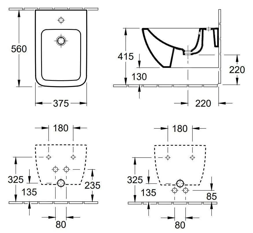 - 1 opening voor bidetkraan
